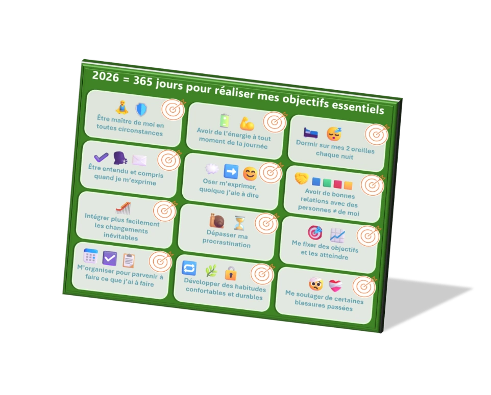 Avec le temps, j’ai découvert des méthodes et des concepts concrets pour répondre aux besoins que nous partageons tous : retrouver de l’énergie, de la clarté, de la motivation, mieux s’organiser, apaiser le stress, améliorer nos relations, communiquer plus justement, et traverser les changements inévitables de la vie avec plus de solidité intérieure.