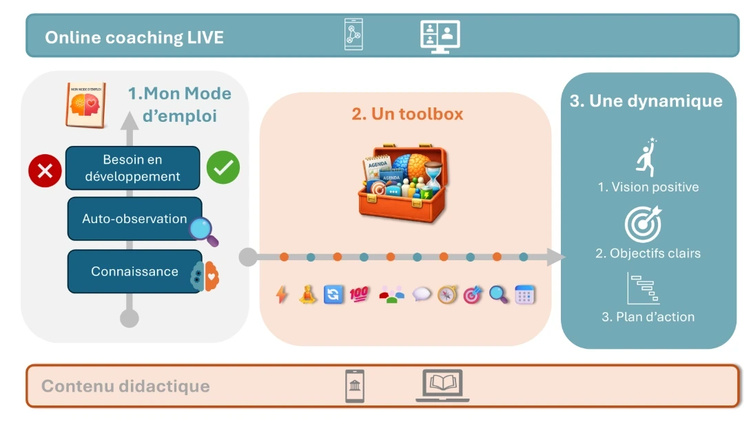 Ce qui transforme, c’est : un cadre, un rythme, un accompagnement, des outils adaptés à ton cerveau, et un suivi suffisamment long pour ancrer de nouvelles habitudes.